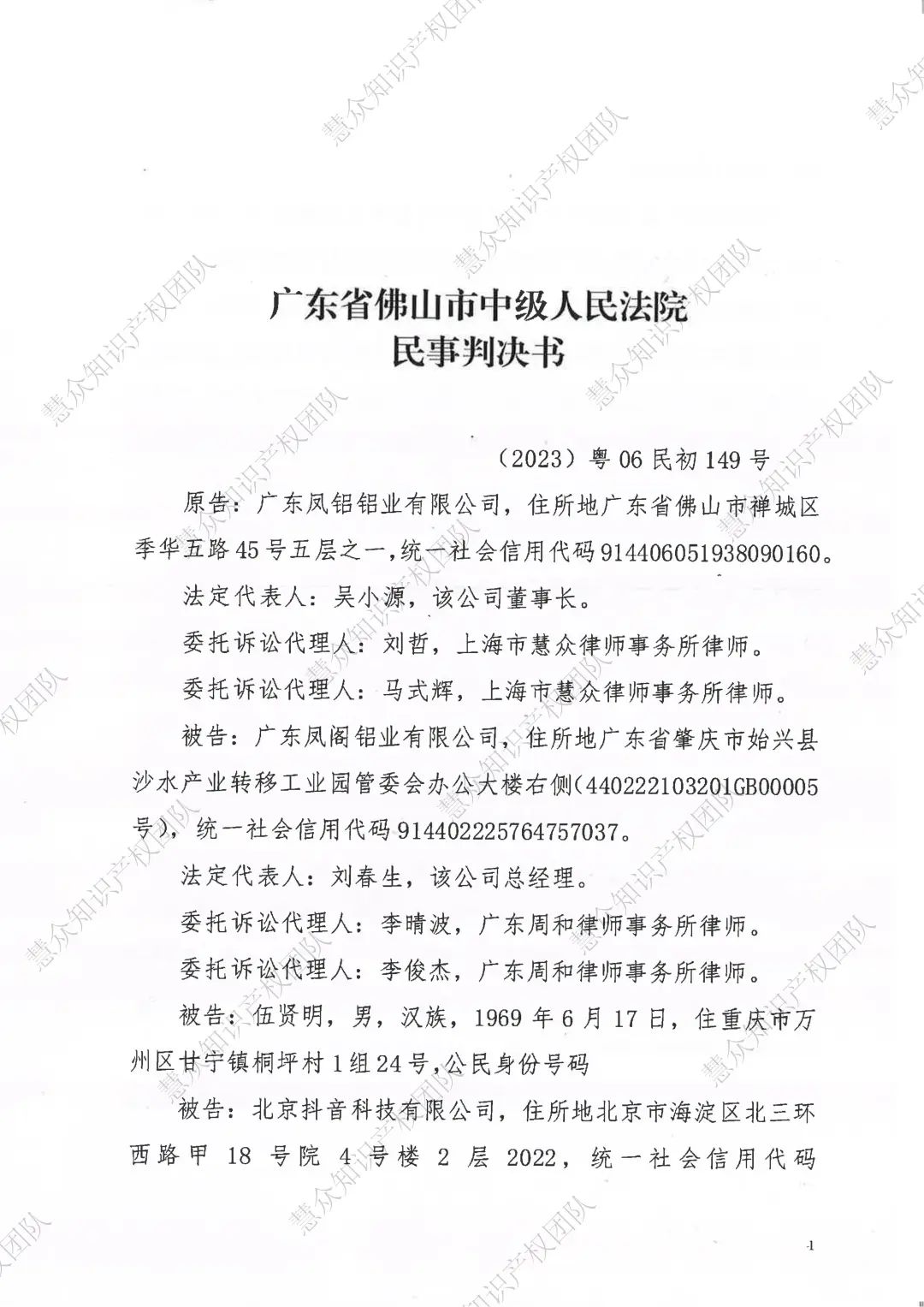 安徽判赔800万!辉知队代理“凤铝”商标维权案胜诉